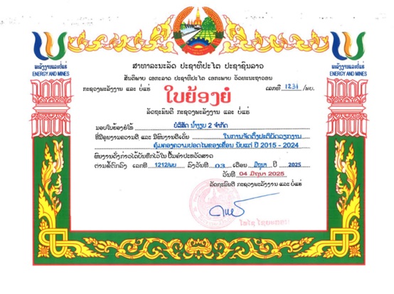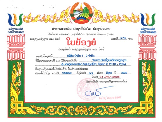 "Dam Safety Management Certificate of Honor" for Nam Lik 1-2 Hydropower Station